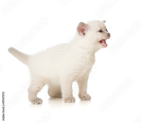 © Andrey Kuzmin, Obraz premium white meowing kitten