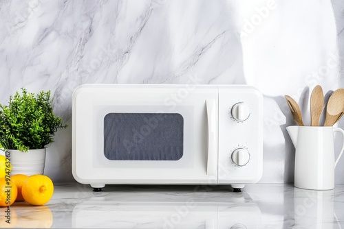 Obraz premium White Microwave on Kitchen Countertop