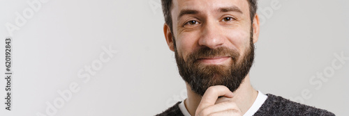 Obraz premium White mid man with beard smiling and looking at camera