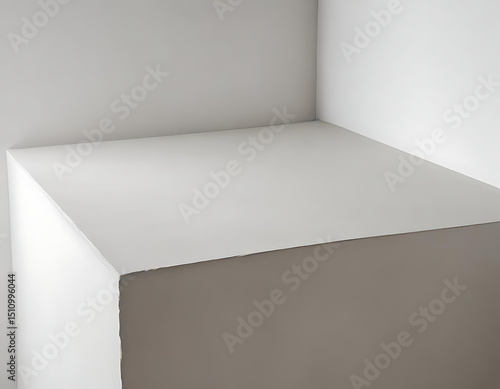 © Nornat.art, Fototapeta premium White minimalist geometric cube in empty corner