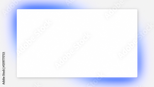 Fototapeta premium White minimalist rectangle frame surrounded by blue blurred light. Copy space for presentation, product placement, and commercial. Blank rectangular banner with soft neon light. White background.