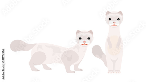 Fototapeta premium White mink. Mink in a flat style. Isolated, vector.