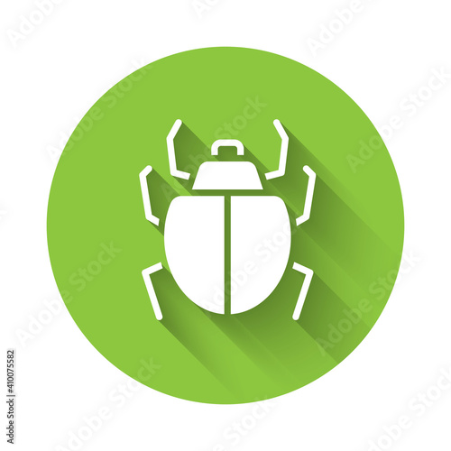 Obraz premium White Mite icon isolated with long shadow. Green circle button. Vector.