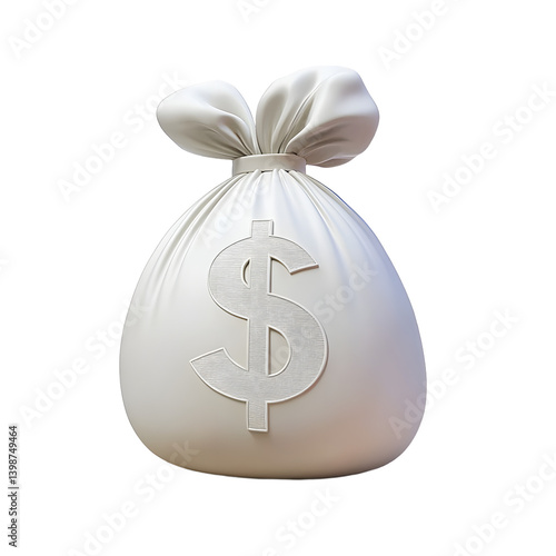 © Daniel, Fototapeta premium White money bag with dollar currency sign. 3d rendering isolated on white background. Cartoon plastic style icon