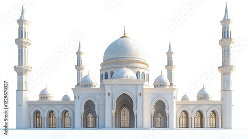 © mlangsen, Fototapeta premium White mosque exterior, clear sky background, suitable for architectural visualization