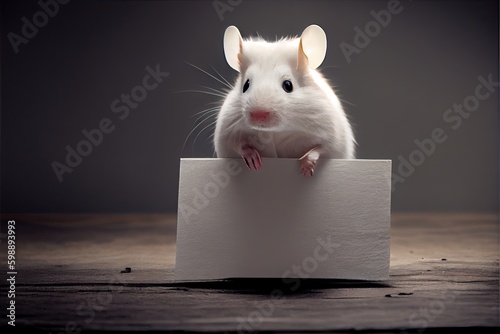 Fototapeta premium white mouse with a empty sign in paws Generative AI