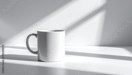 Obraz premium White mug basks in sunlight on a bright surface