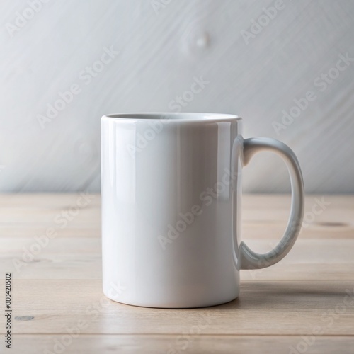 © night, Fototapeta premium White Mug mock up on Wooden Surface