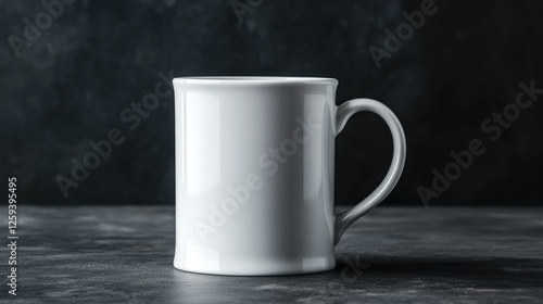 © Fenny, Obraz premium White mug on dark table, mockup for design