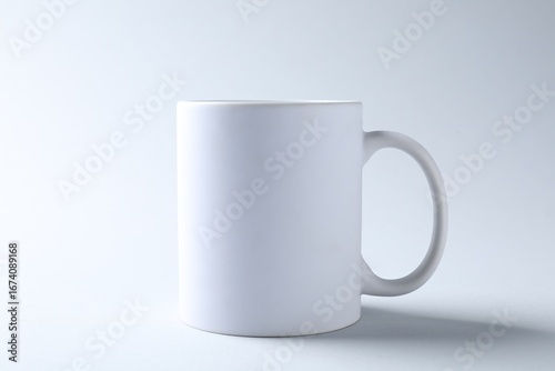 © New Africa, Obraz premium White mug on light background. Mockup for design