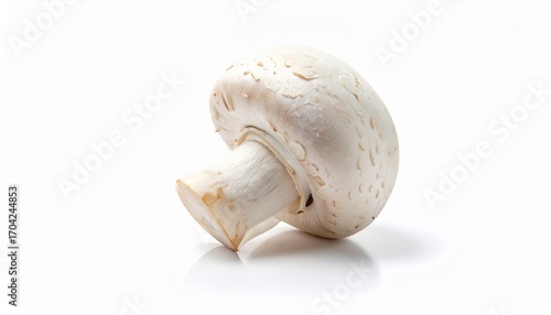 Fototapeta premium White Mushroom with Round Cap and Natural Stem Isolated on White Background for Botanical Object, Edible Fungus and Organic Food Concept