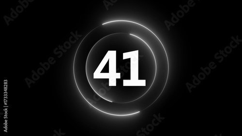 Obraz premium White Neon Circle with Number 41 on Black Background numeral countdown