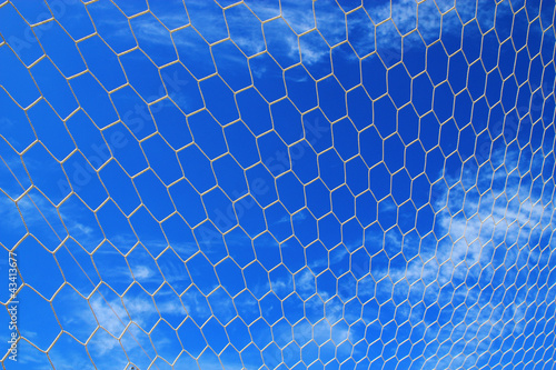 Fototapeta premium White net football, soccer ,blue blue sky background