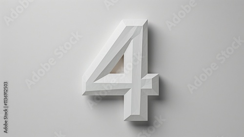 © ari, Fototapeta premium White number four, 3D rendered, geometric design.