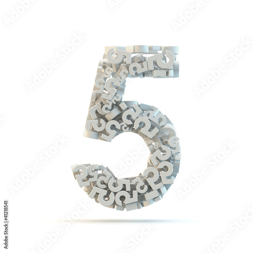 © Mockup Cake, Naklejka premium White number 5 isolated on white.