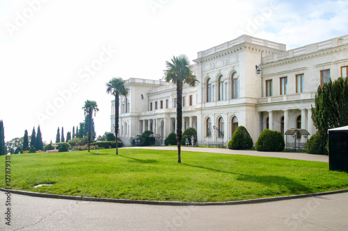 © Ekaterina, Obraz premium White old castle in the garden in sunny summer day