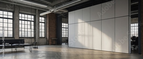 © SR Production, Obraz premium White open space office corner with mock up wall