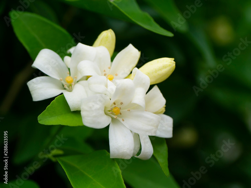 Fototapeta premium White Orange Jasmine or China Box flower.