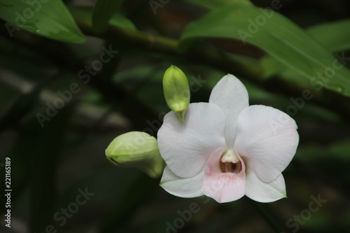 Obraz premium White orchid with natural background in the garden.
