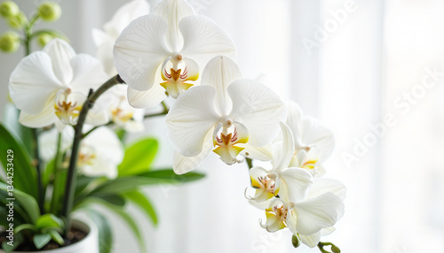 © Ksenia Pestereva, Obraz premium White orchids in a bright interior against a soft background
