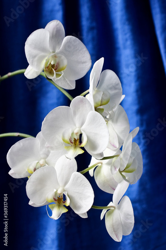 © Alien, Obraz premium white orchids on a background of linen curtains