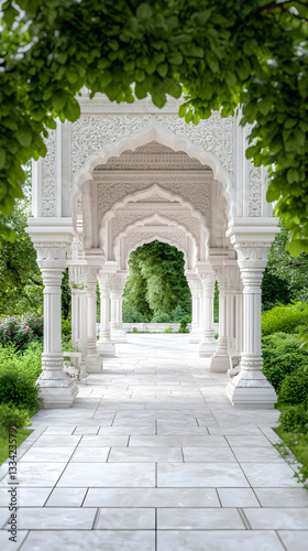 © Lailatul, Obraz premium White ornate arched walkway in lush garden