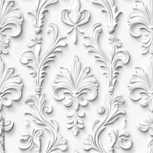 © tourinn, Fototapeta premium White Ornate Floral Pattern