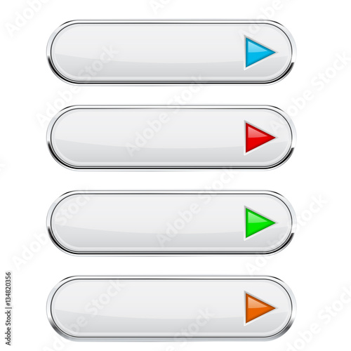 © savanno, Obraz premium White oval buttons with colored arrows. Menu interface elements with metal frame