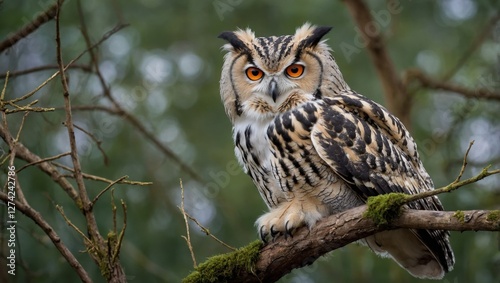 © Igor, Fototapeta premium White owl on a tree in the forest