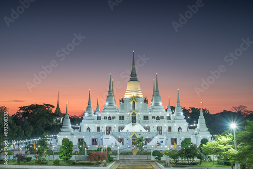 Obraz premium White pagoda at Asokaram temple, one of the famous public places in Samut...