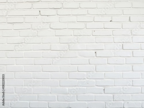 © tpadobestock, Naklejka premium White painted old brick wall creating a panoramic background, painted, vintage