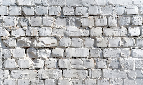 © Onchira, Obraz premium White painted old brick Wall panoramic background