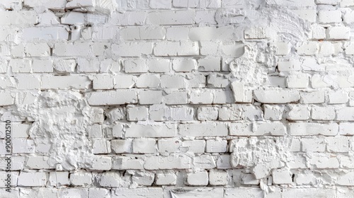 © Dzikrul Husnani, Obraz premium White painted old brick Wall panoramic background - generative ai
