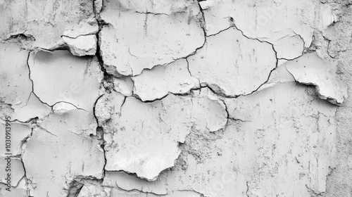 Fototapeta premium White painted surface cracking and revealing layers underneath, creating an...