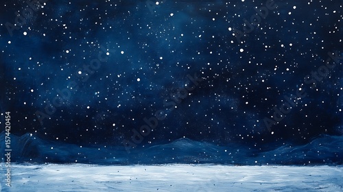 Naklejka premium White particles slowly drifting through a deep midnight blue environment, mimicking the calmness of snowfall