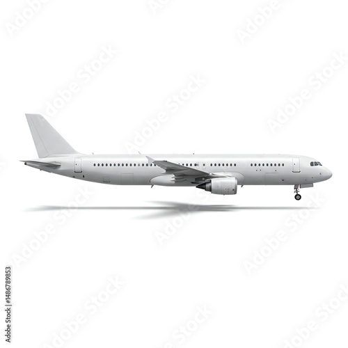Fototapeta premium White passenger airplane isolated on clean white background, side view