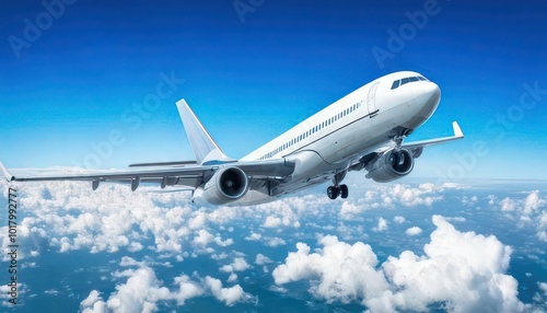 © blackdiamond67, Obraz premium White passenger plane flying in the sky with amazing clouds in the background