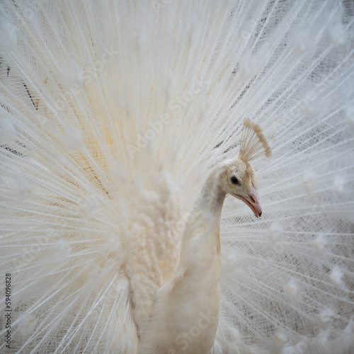 © Ian, Fototapeta premium White Peacock Tail in Full Display
