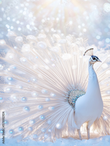 © Yuliia, Fototapeta premium White peacock with diamonds