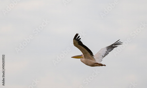 Obraz premium White Pelican in Flight
