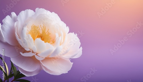 © Brandon, Fototapeta premium white peony blossom with soft lilac saffron gradient background