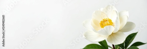 © methinee, Fototapeta premium White peony flower isolated on white background, lush, full, blooming
