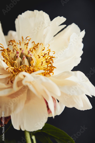 © Анастасия Стасюк, Obraz premium white peony on black background