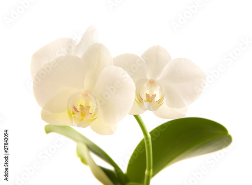 Obraz premium white phalaenopsis orchid stem; isolated on white