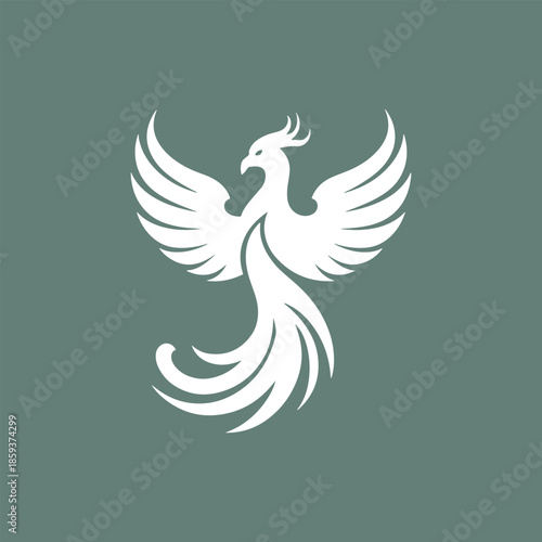 © HR, Obraz premium White Phoenix Bird Logo on Dark Background Vector