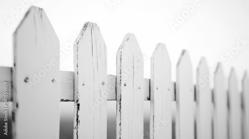© Andrii Savchuk, Fototapeta premium White picket fence with bright sunlight behind it