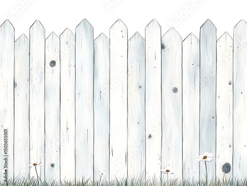 © Saka, Fototapeta premium White picket fence with daisies, and grass.