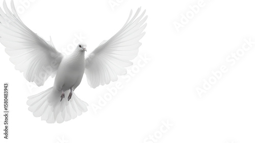© PNG, Obraz premium White pigeon flying with open wings in mid-air motion isolated on white background