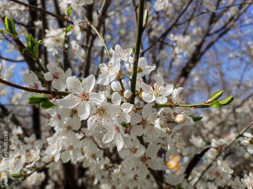 © Eleonora, Obraz premium White Plum blossoms, branches, blue sky