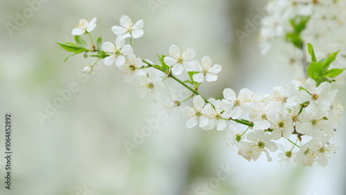 © artifex.orlova, Obraz premium White plum tree flowers. White flowers sway in the wind. Slow motion.